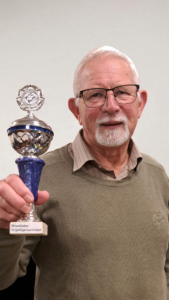 Aan het einde van de middag was het tijd voor de prijsuitreiking. Gerrit Minnen bleek niet alleen een uitstekende organisator, maar ook met 63,3% de beste bridger van de dag. Hij ging naar huis met de eer en mag 16 meesterpunten op zijn conto bijschrijven. Ook mag hij een jaar lang op de wisselbeker passen.