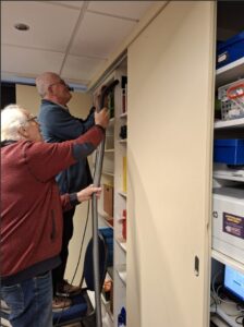 Ondertussen klusten in de computerruimte enkele bestuursleden er lustig op los. De echte werkpaarden onder de vrijwilligers.